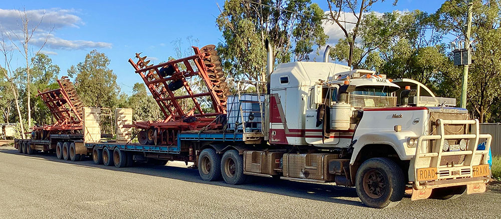 Transport general freight, pallets, equipment, farm machinery, irrigators, building materials, steel, pallets, mine.